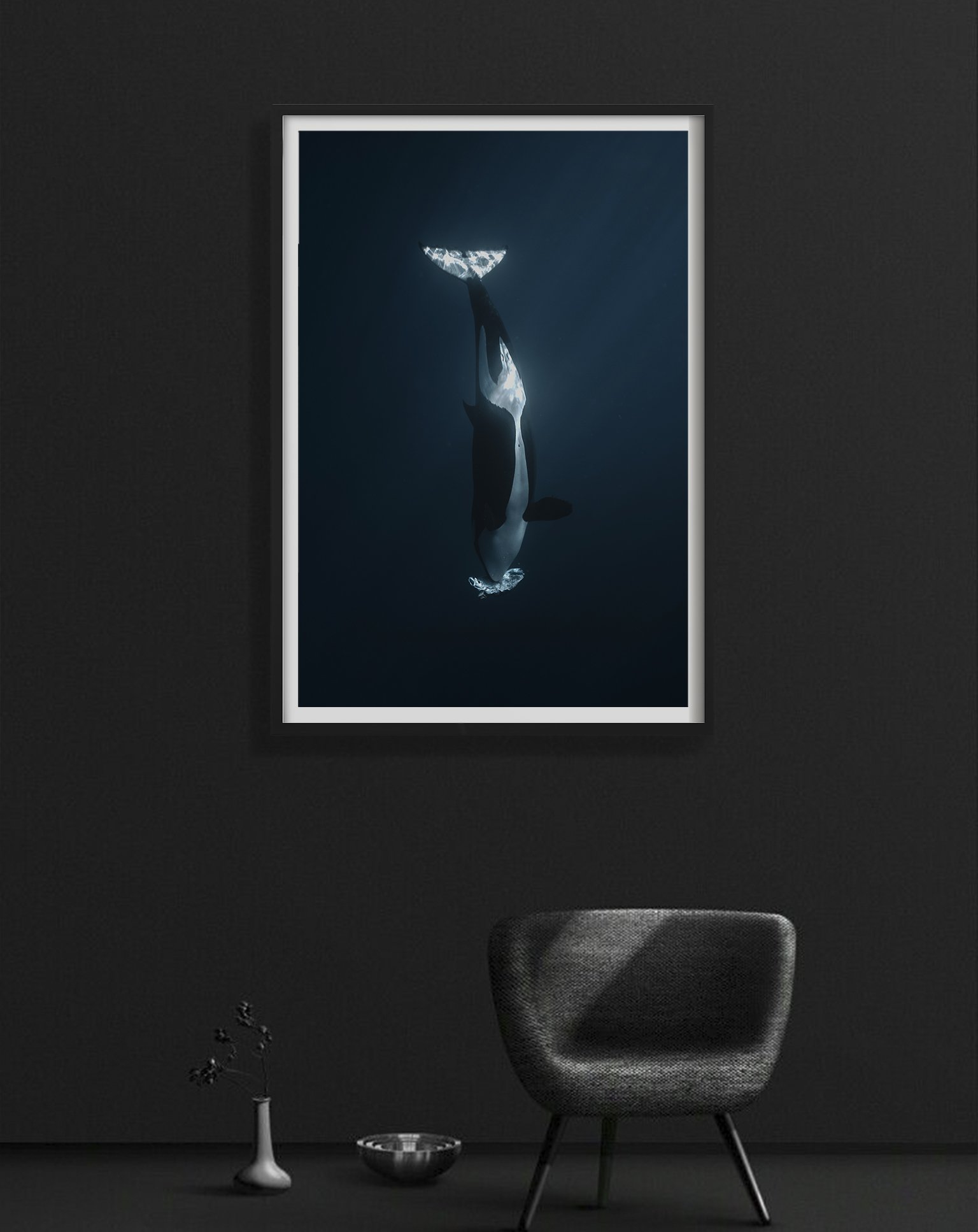 In a fading shaft of light, an orca slipped beneath the waves with carrying a turtle’s carcass down to the depths.